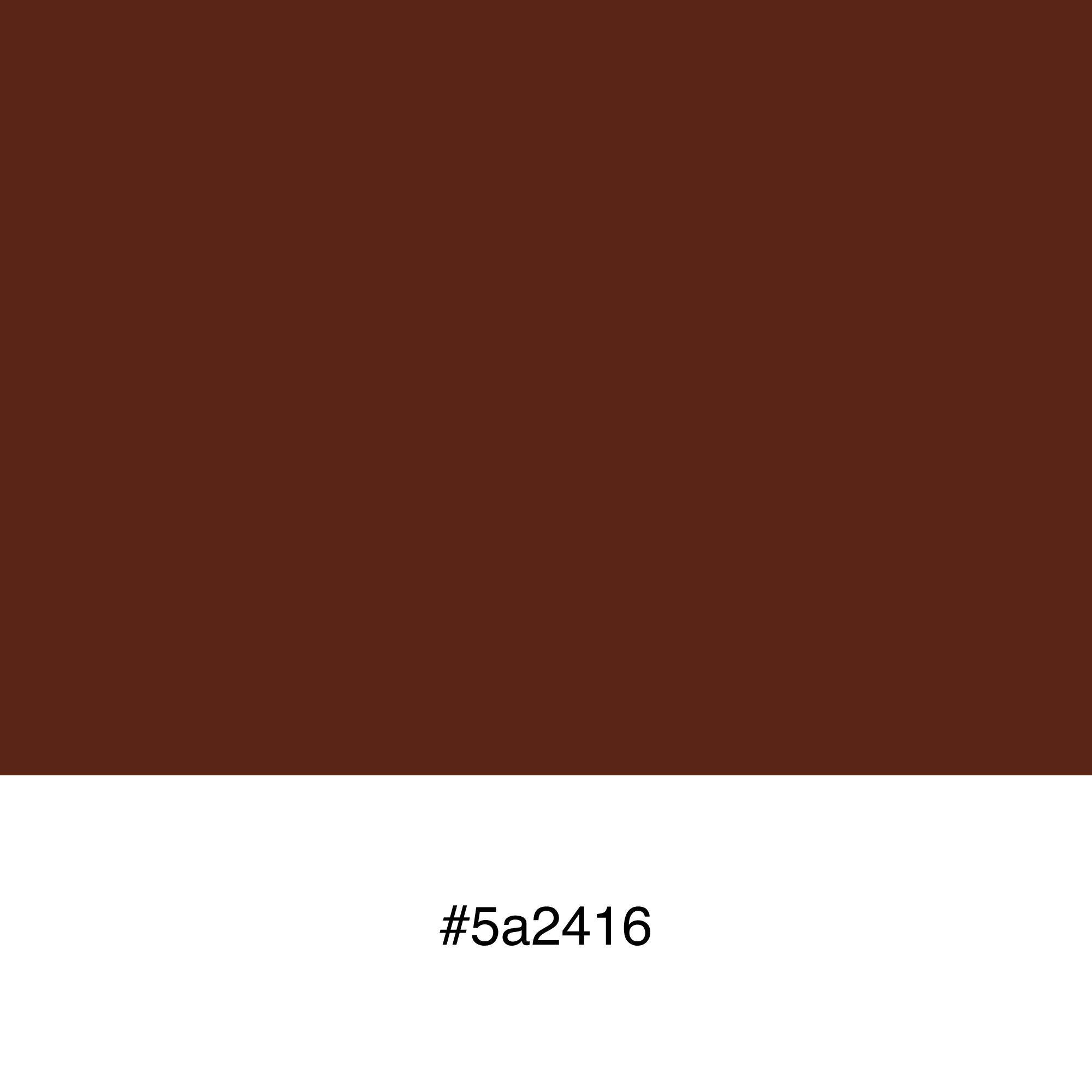 #5a2416 hex color red value is 90, green value is 36 and the blue value of its RGB is 22. Cylindrical-coordinate representations (also known as HSL) of color #5a2416 hue: 0.03 , saturation: 0.61 and the lightness value of 5a2416 is 0.22.