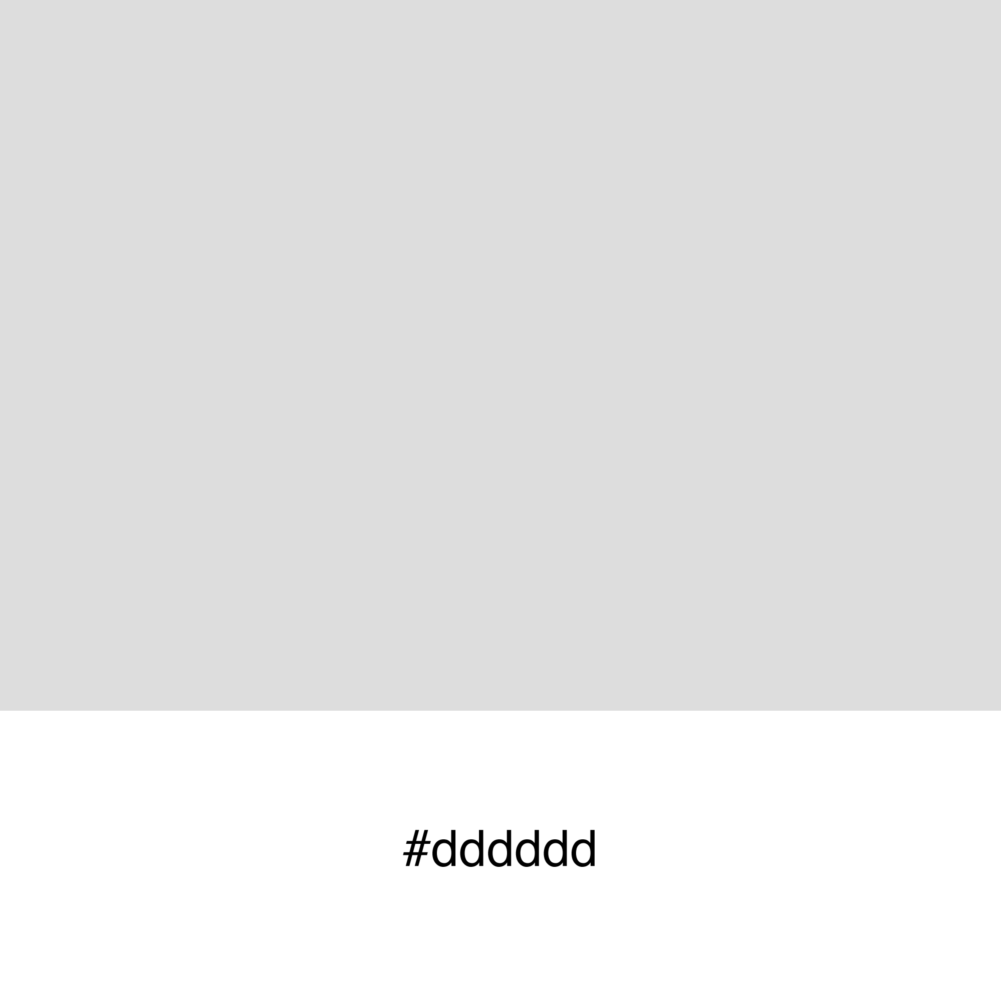 #dddddd hex color red value is 221, green value is 221 and the blue value of its RGB is 221. Cylindrical-coordinate representations (also known as HSL) of color #dddddd hue: 0.00 , saturation: 0.00 and the lightness value of dddddd is 0.87.